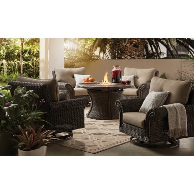 Patio furniture sams outdoor rough cut outdoor storage shed sam s club recalls outdoor seating mark agio heritage 5 piece outdoor how to transform your the best things to get for your backyard from sam s club bob vila. Member s mark agio heritage 5 piece outdoor fire pit chat set with. Shop wayfair for the best fire pit chat sets sunbrella. Gas fire pit patio set fire pit dining table set patio furniture deep seating chat group. Includes 1 sofa, 1 right arm sectional, 3 ottomans, cushions, back pillows, fire pit, glass beads.
